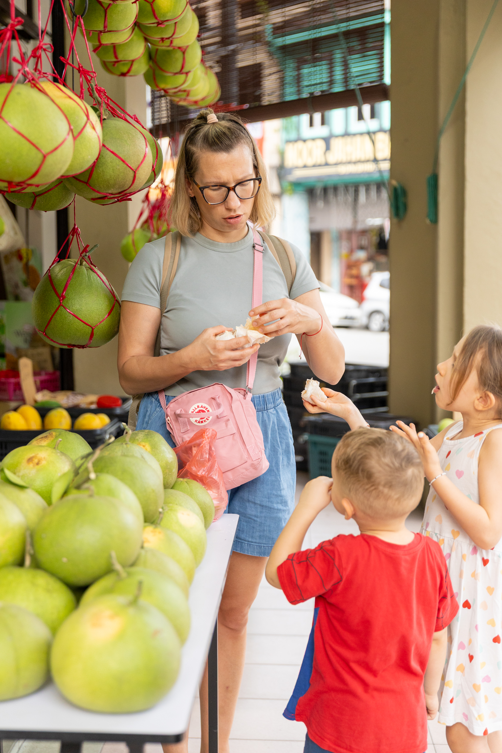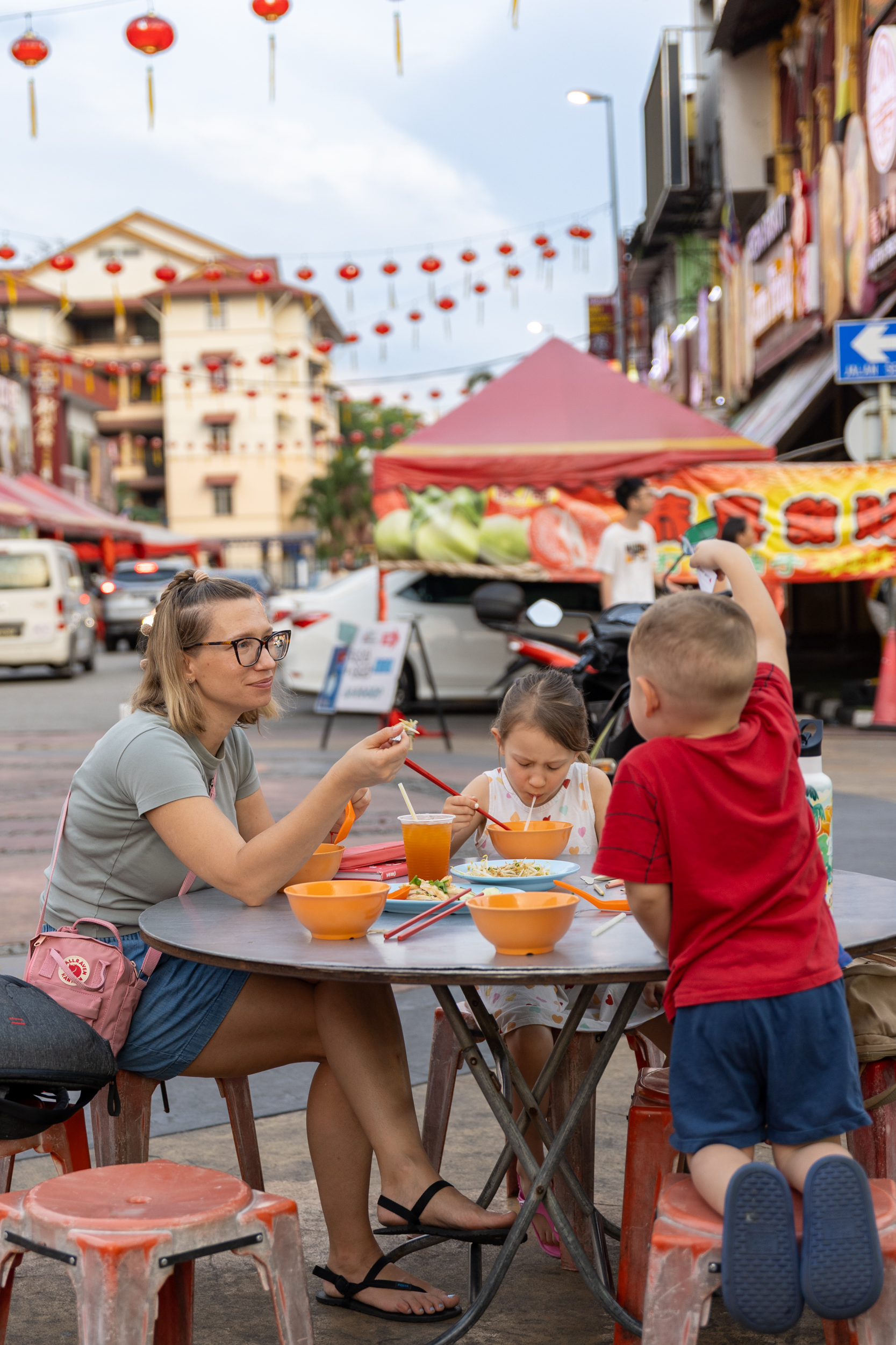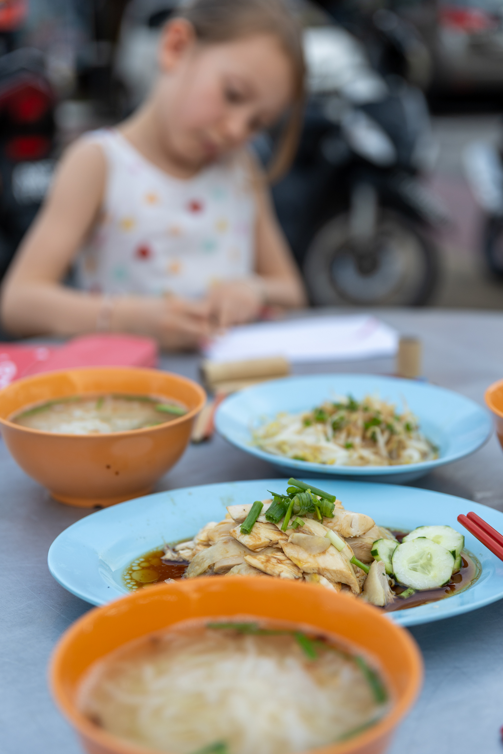 Spet je malce kot nek lov na zaklad. Napise na hišah razumemo še manj kot prej, saj so namesto v malezijščini, večinoma v kitajščini. Gledamo, kam hodijo domačini, gremo tja. Pogledamo na sosedjo mizo, kaj jejo, in rečemo: “Točno tole bi.” Najlažje, brez kompliciranja.
