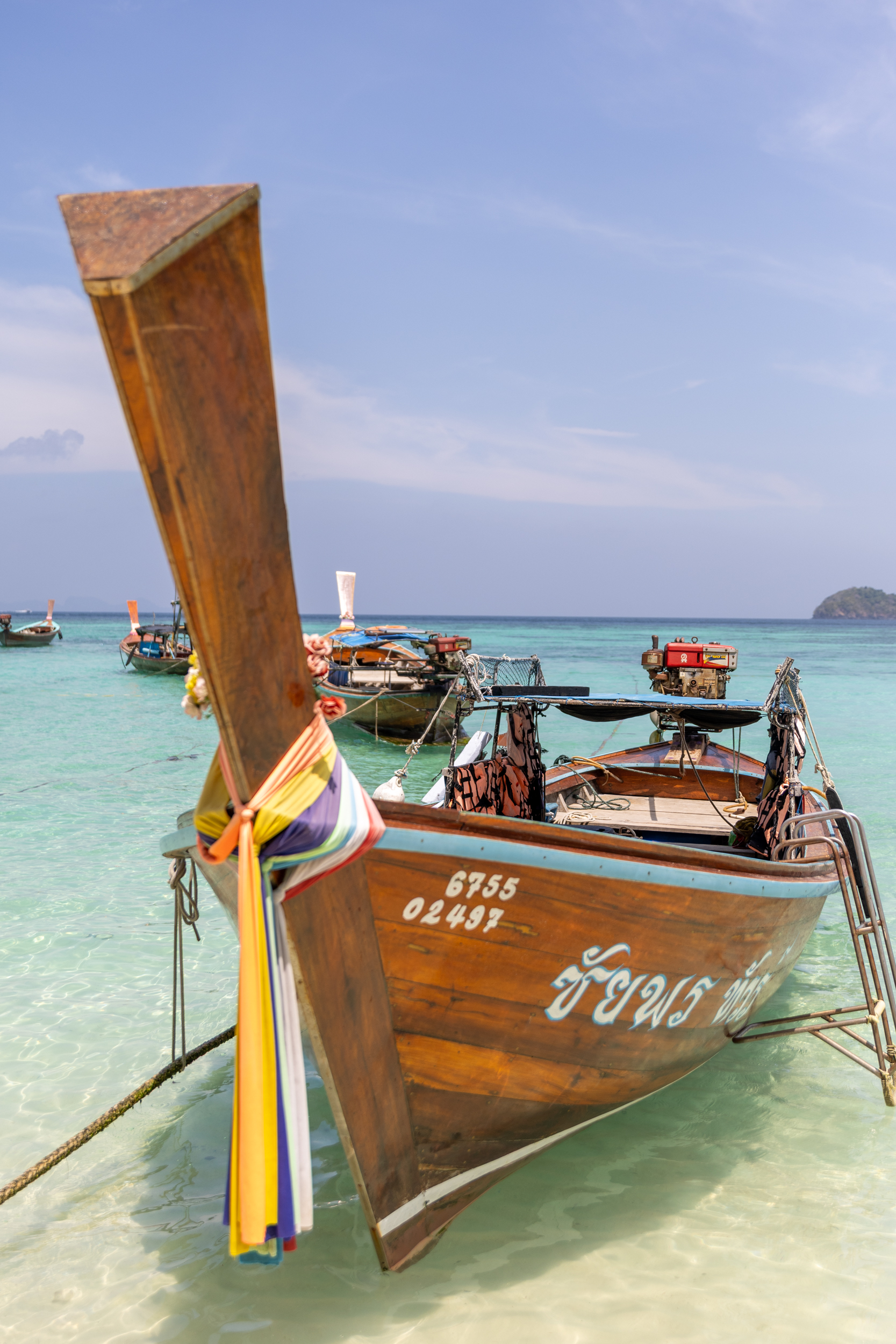 A nekaj je šlo narobe. Tako kot gre vedno pri rajskih (tajskih) otokih. V desetih letih je vsega postalo preveč. Ne malo preveč. Ne veliko preveč. Ampak nevzdržno preveč. Na zgornjih fotografijah je ista plaža slikana v razmaku 10 let. Prej so bili tile lični pisani čolni samo za okras. Ko so se pripeljali v pristan, so bili atrakcija. Fotkali smo se ob njih. Danes so vrvi, ki od dreves na obali tečejo globoko med korale, posejane vsakih 5 metrov in čolnov v vodi je stotine. Zjutraj, ko gredo “na teren” se jim umikaš, zvečer ko pridejo nazaj, se jim umikaš tečen. Če bi rad zaplaval, se zatikaš v vrvi. Pogleda na lepo dolgo plažo ni več. Razumem. Biznis. Nekdo je pogruntal, da imamo turisti radi vse te celodnevne izlete po okoliških otokih. Dobro zanj.