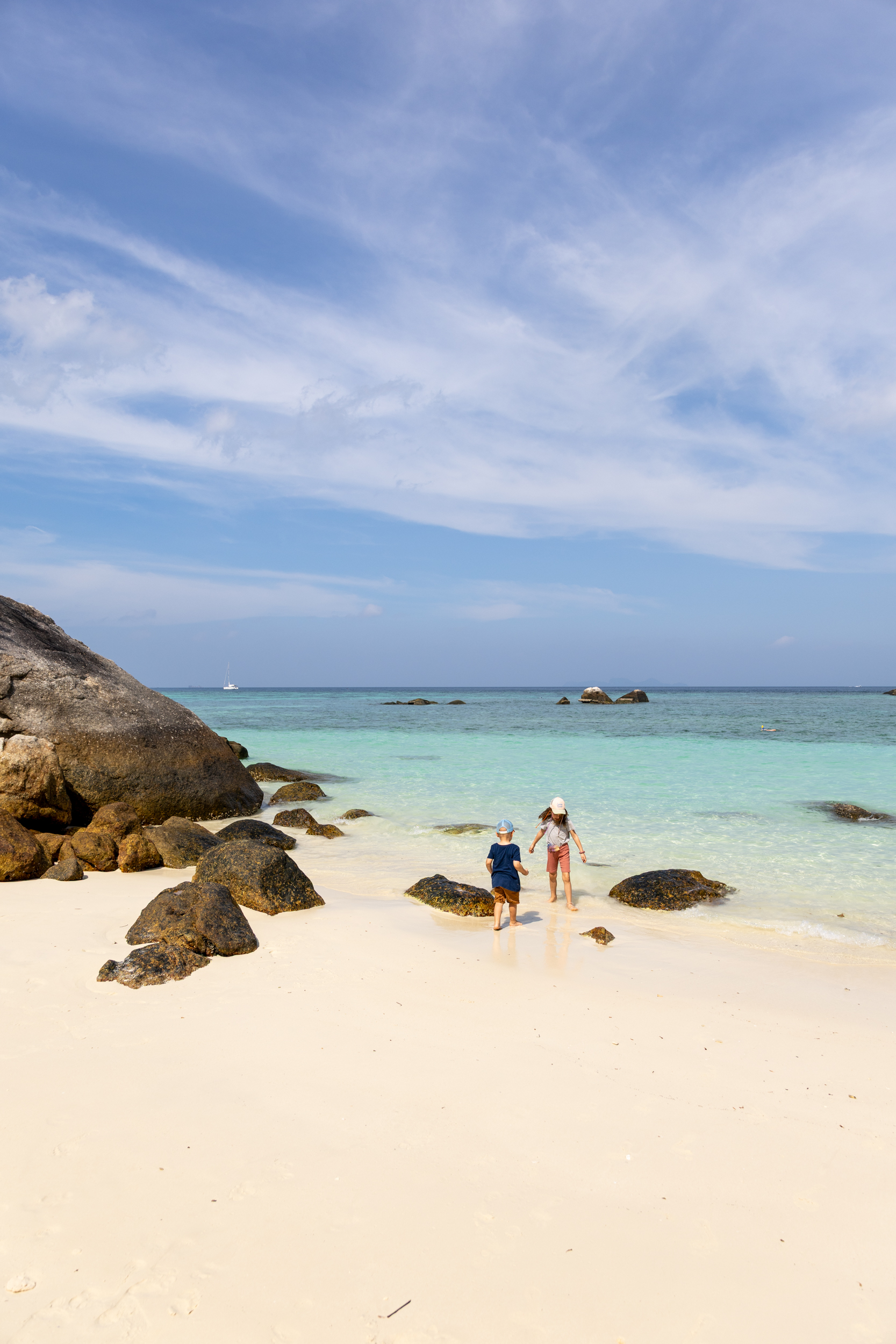 Sam po sebi je Koh Lipe verjetno eden najlepših tajskih otokov. Je ravno prav mali, da se lahko iz enega konca otoka na drugega sprehodiš in ravno dovolj velik, da ga lahko, tako kot midva takrat, raziskuješ tedne in tedne. Plaža, ki gleda na vzhod je dolga, peščena in polna senčnih kotičkov. Tista proti zahodu je zaobljena kot luna in te pusti odprtih ust, ko se barve sonca ujamejo v roza puh redko posejanih oblakov.