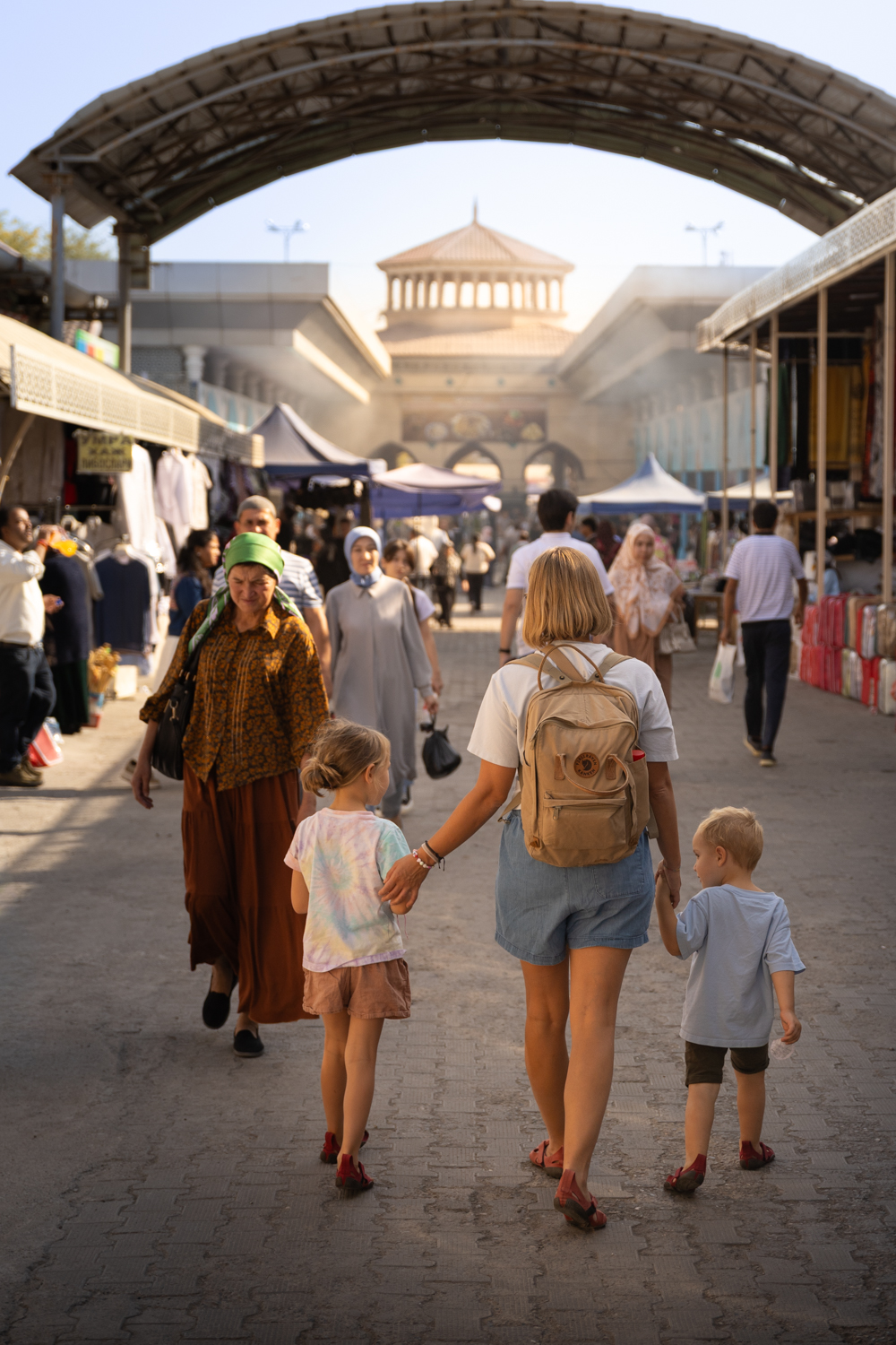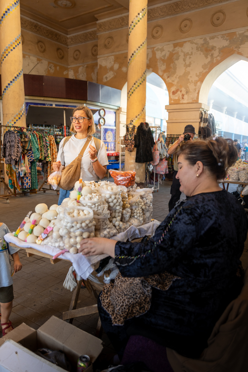 Zdaj smo se že naučili; da si konkretno olajšamo prvi dan, si že doma zacahnemo restavracijo, v katero gremo jest in to naredimo epicenter našega prvega dne. Vse ostalo pa pletemo tam naokrog. Po dopoldanskem spancu (še preden smo šli pod tuš ali si umili zobe), smo najprej napadli kotle plova (lokalna specialitta riža, jagnjetine, konjskega mesa in sladkastih začimb), potem pa odkrivali čare lokalne tržnice.