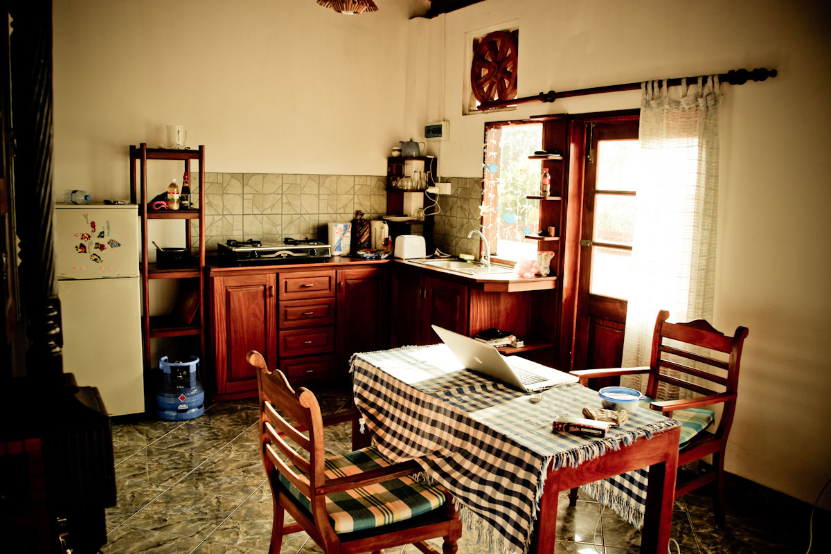 To stanovanje Raja (lastnik) oddaja sicer za 50.000 rupij na mesec, kar je malce manj kot 280 eur na mesec. Vključujoč stroške. In, v najinem primeru, še tuno, ki nama jo bi prinesel z večernega ribolova.